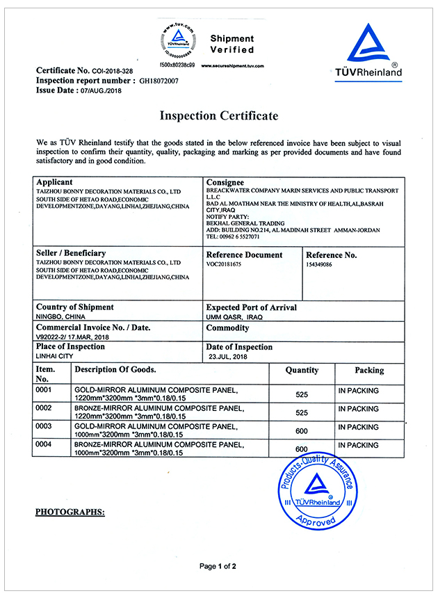 Our aluminum composite panel company was certified with ISO 9001( Quality Management Systems), ISO 14001 (Environmental Management Systems) and GSG by made-in-China website company,It make us confident on all kinds of ACP producing.
